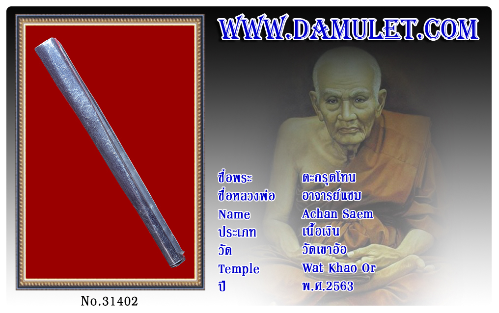 ตะกรุดโทน อาจารย์แซม วัดเขาอ้อ พ.ศ.2563 2563 08 ส.ค. 2020 317 share tweet share ชื่อพระ : ตะกรุดโทนชื่อหลวงพ่อ : อาจารย์แซมประเภท : เนื้อเงินวัด-ปี : วัดเขาอ้อ พ.ศ.2563รหัส : No.31402วันที่ออกบัตร : 08-08-2563ชื่อเจ้าของพระ : TT Heng Amulet
