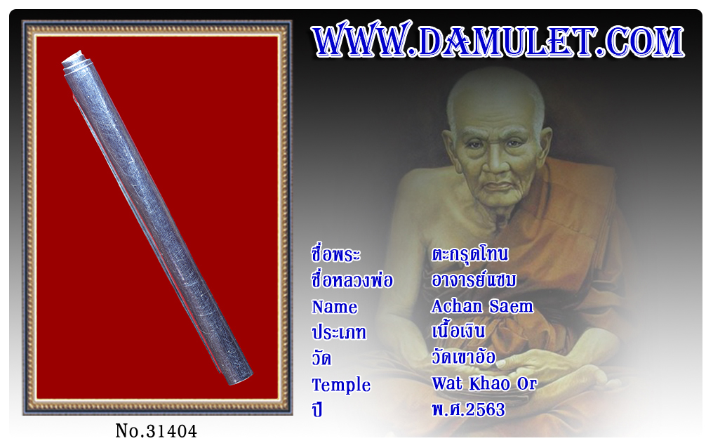 ตะกรุดโทน อาจารย์แซม วัดเขาอ้อ พ.ศ.2563 2563 08 ส.ค. 2020 342 share tweet share ชื่อพระ : ตะกรุดโทนชื่อหลวงพ่อ : อาจารย์แซมประเภท : เนื้อเงินวัด-ปี : วัดเขาอ้อ พ.ศ.2563รหัส : No.31404วันที่ออกบัตร : 08-08-2563ชื่อเจ้าของพระ : TT Heng Amulet