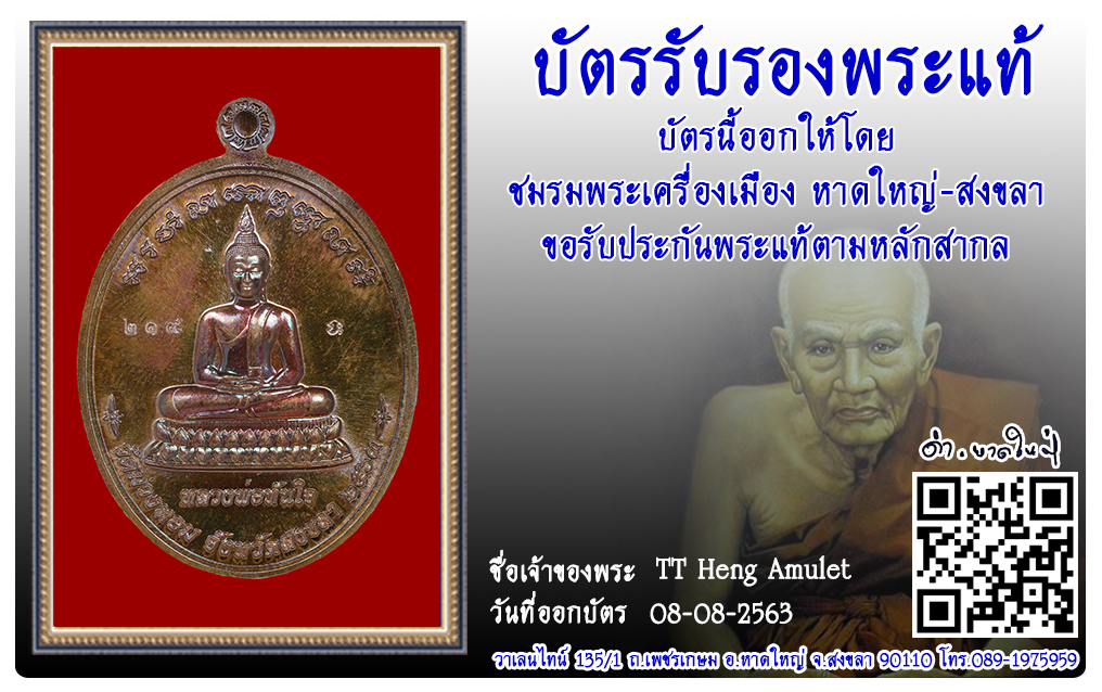 เหรียญหลวงพ่อสมหวัง วัดม่วงหอม พ.ศ.2563 2563 08 ส.ค. 2020 304 share tweet share ชื่อพระ : เหรียญหลวงพ่อสมหวังประเภท : รุ่น สมหวังทันใจ เนื้อทองแดงหน้ากากเงิน No.219วัด-ปี : วัดม่วงหอม พ.ศ.2563รหัส : No.31411วันที่ออกบัตร : 08-08-2563ชื่อเจ้าของพระ : TT Heng Amulet