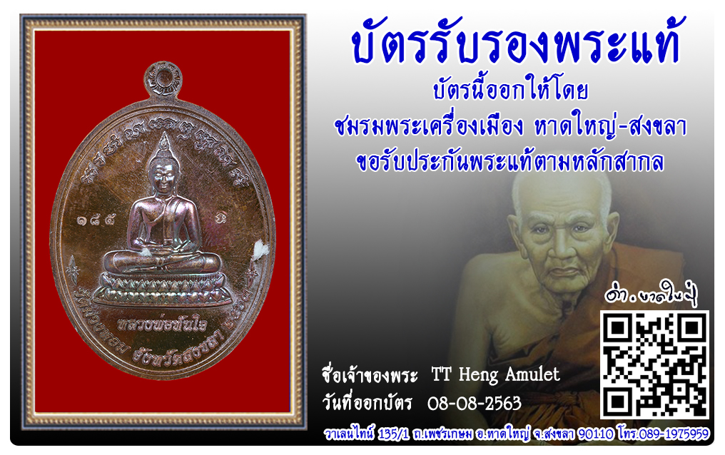 เหรียญหลวงพ่อสมหวัง วัดม่วงหอม พ.ศ.2563 2563 08 ส.ค. 2020 304 share tweet share ชื่อพระ : เหรียญหลวงพ่อสมหวังประเภท : รุ่น สมหวังทันใจ เนื้อทองแดงหน้ากากเงิน No.185วัด-ปี : วัดม่วงหอม พ.ศ.2563รหัส : No.31412วันที่ออกบัตร : 08-08-2563ชื่อเจ้าของพระ : TT Heng Amulet