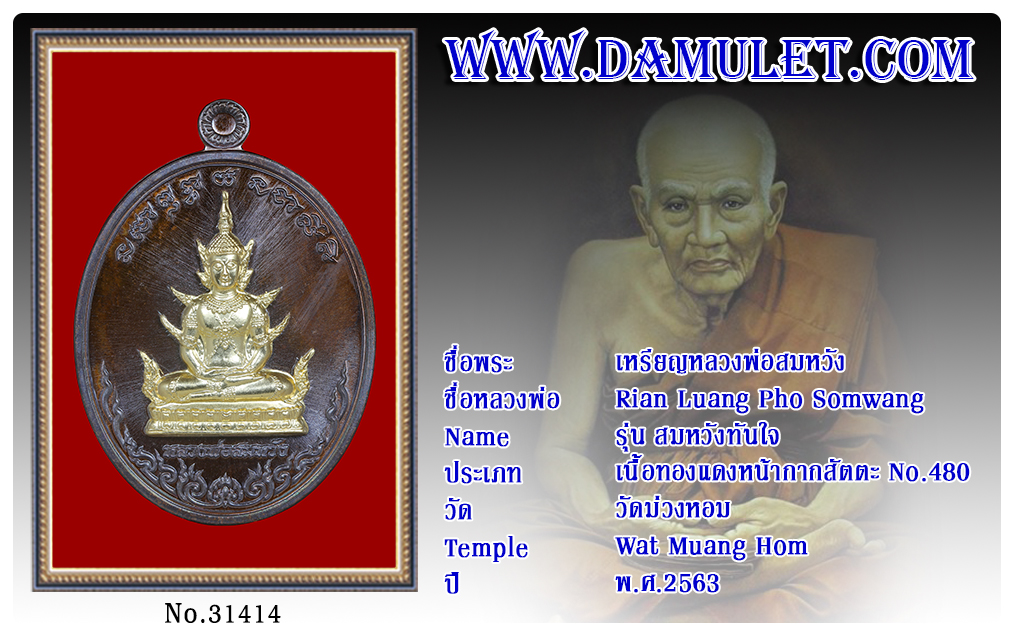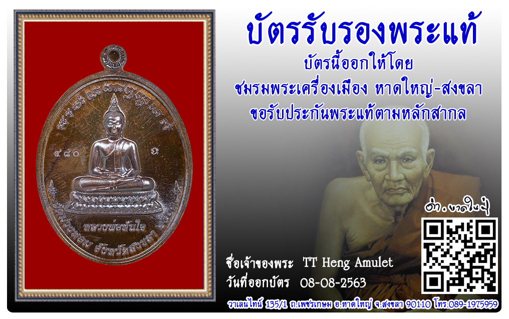 เหรียญหลวงพ่อสมหวัง วัดม่วงหอม พ.ศ.2563 2563 08 ส.ค. 2020 399 share tweet share ชื่อพระ : เหรียญหลวงพ่อสมหวังประเภท : รุ่น สมหวังทันใจ เนื้อทองแดงหน้ากากสัตตะ No.480วัด-ปี : วัดม่วงหอม พ.ศ.2563รหัส : No.31414วันที่ออกบัตร : 08-08-2563ชื่อเจ้าของพระ : TT Heng Amulet