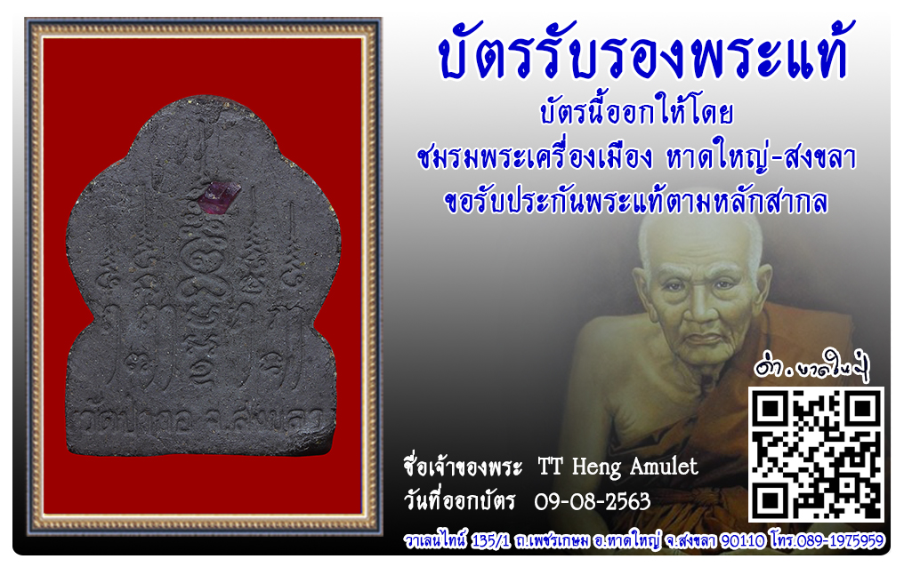 พระผงเปิดบาตร อาจารย์ทอง วัดป่ากอ จ.สงขลา 2563 09 ส.ค. 2020 915 share tweet share ชื่อพระ : พระผงเปิดบาตรชื่อหลวงพ่อ : อาจารย์ทองวัด-ปี : วัดป่ากอ จ.สงขลารหัส : No.31420วันที่ออกบัตร : 09-08-2563ชื่อเจ้าของพระ : TT Heng Amulet