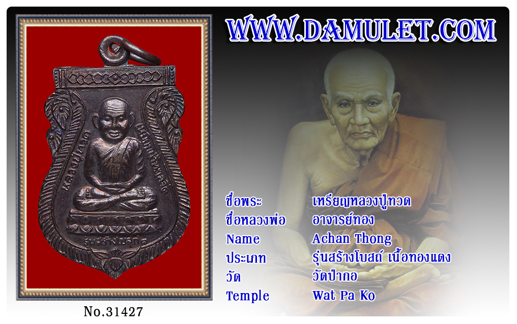 เหรียญหลวงปู่ทวด อาจารย์ทอง วัดป่ากอ 2563 09 ส.ค. 2020 285 share tweet share ชื่อพระ : เหรียญหลวงปู่ทวดชื่อหลวงพ่อ : อาจารย์ทองประเภท : รุ่นสร้างโบสถ์ เนื้อทองแดงวัด-ปี : วัดป่ากอรหัส : No.31427วันที่ออกบัตร : 09-08-2563ชื่อเจ้าของพระ : TT Heng Amulet