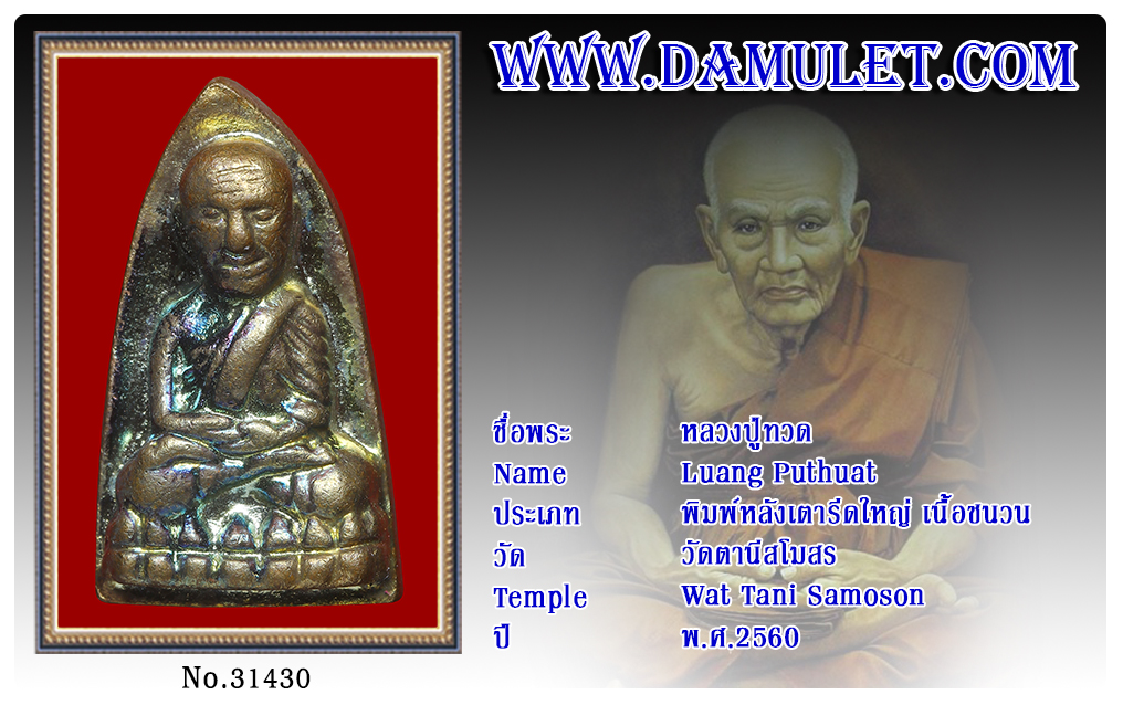 หลวงปู่ทวด วัดตานีสโมสร พ.ศ.2560 2563 09 ส.ค. 2020 441 share tweet share ชื่อพระ : หลวงปู่ทวดประเภท : พิมพ์หลังเตารีดใหญ่ เนื้อชนวนวัด-ปี : วัดตานีสโมสร พ.ศ.2560รหัส : No.31430วันที่ออกบัตร : 09-08-2563ชื่อเจ้าของพระ : TT Heng Amulet