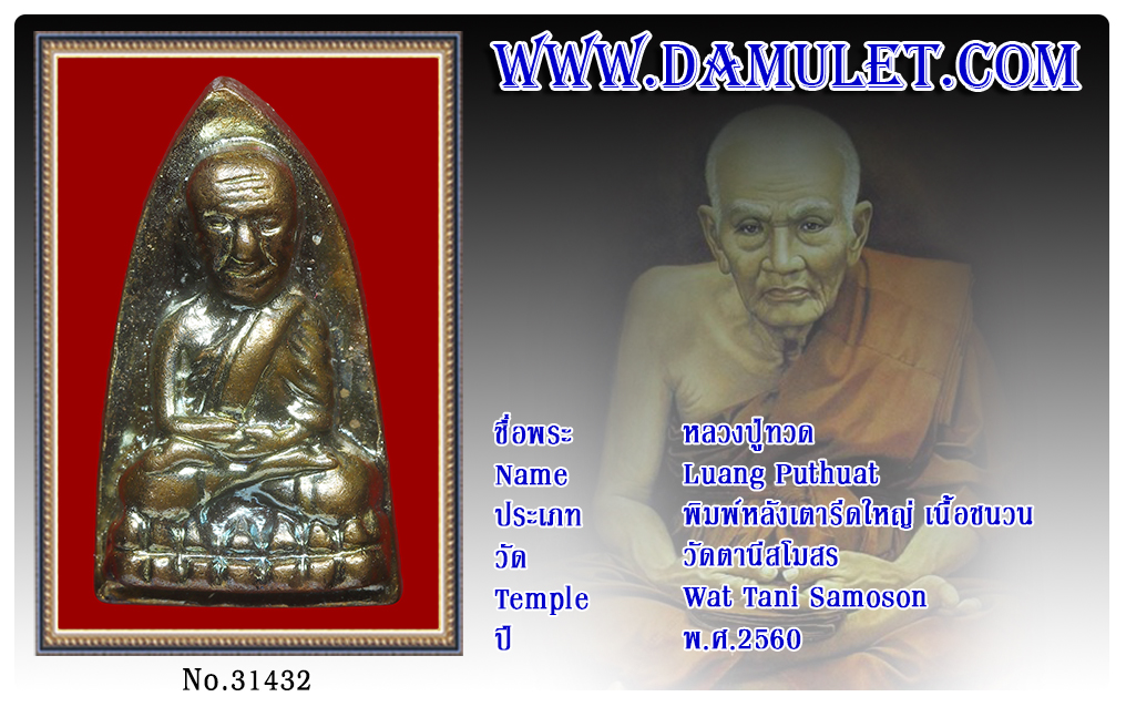 หลวงปู่ทวด วัดตานีสโมสร พ.ศ.2560 2563 09 ส.ค. 2020 488 share tweet share ชื่อพระ : หลวงปู่ทวดประเภท : พิมพ์หลังเตารีดใหญ่ เนื้อชนวนวัด-ปี : วัดตานีสโมสร พ.ศ.2560รหัส : No.31432วันที่ออกบัตร : 09-08-2563ชื่อเจ้าของพระ : TT Heng Amulet