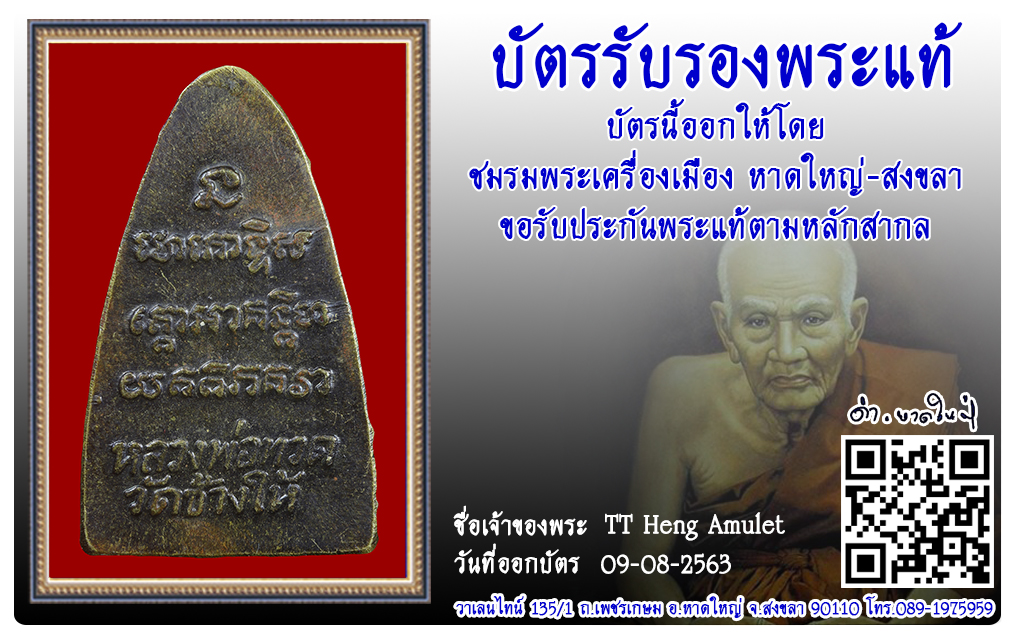 หลวงปู่ทวด วัดช้างให้ พ.ศ.2524 2563 09 ส.ค. 2020 303 share tweet share ชื่อพระ : หลวงปู่ทวดประเภท : พิมพ์หลังหนังสือ เนื้อโลหะ บล๊อค 3 จุดวัด-ปี : วัดช้างให้ พ.ศ.2524รหัส : No.31446วันที่ออกบัตร : 09-08-2563ชื่อเจ้าของพระ : TT Heng Amulet