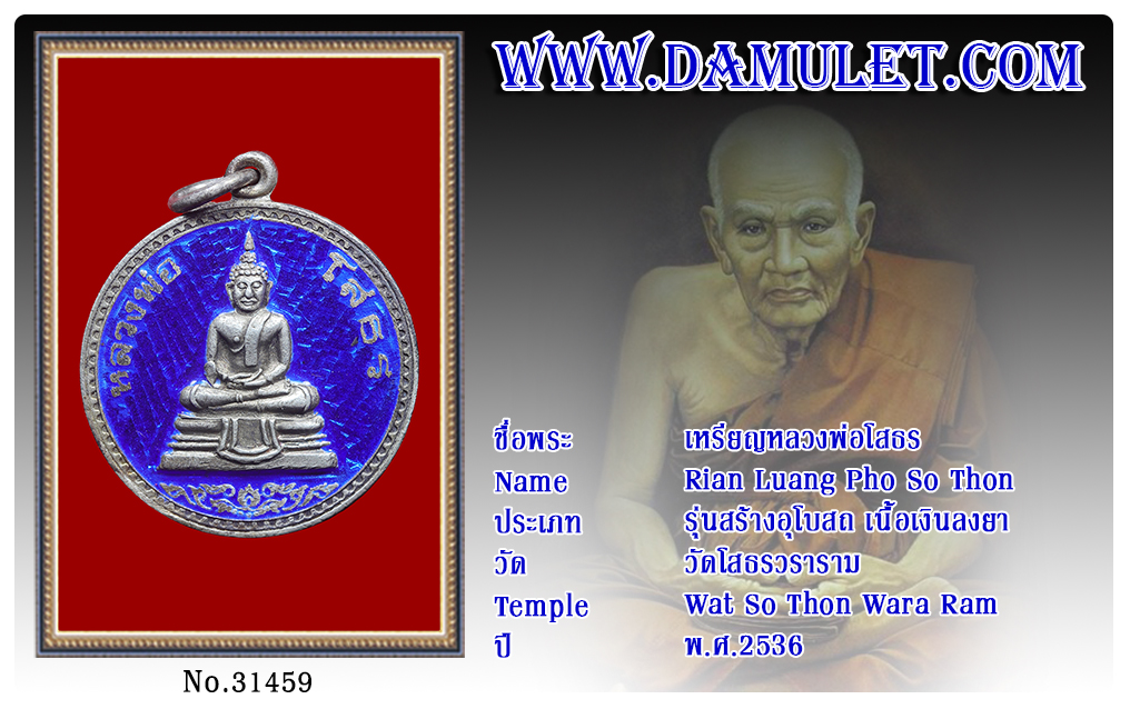 เหรียญหลวงพ่อโสธร วัดโสธรวราราม พ.ศ.2536 2563 09 ส.ค. 2020 706 share tweet share ชื่อพระ : เหรียญหลวงพ่อโสธรประเภท : รุ่นสร้างอุโบสถ เนื้อเงินลงยาวัด-ปี : วัดโสธรวราราม พ.ศ.2536รหัส : No.31459วันที่ออกบัตร : 09-08-2563ชื่อเจ้าของพระ : TT Heng Amulet