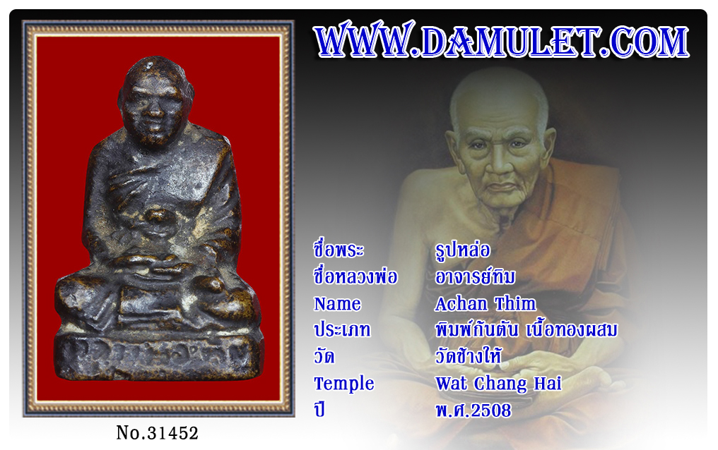 รูปหล่อ อาจารย์ทิม วัดช้างให้ พ.ศ.2508 2563 10 ส.ค. 2020 482 share tweet share ชื่อพระ : รูปหล่อชื่อหลวงพ่อ : อาจารย์ทิมประเภท : พิมพ์ก้นตัน เนื้อทองผสมวัด-ปี : วัดช้างให้ พ.ศ.2508รหัส : No.31452วันที่ออกบัตร : 10-08-2563ชื่อเจ้าของพระ : TT Heng Amulet