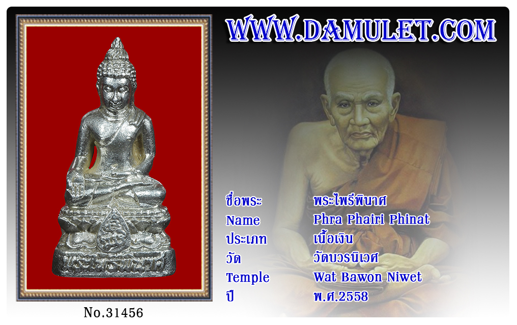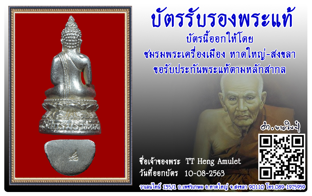 พระไพรีพินาศ วัดบวรนิเวศ พ.ศ.2558 2563 10 ส.ค. 2020 592 share tweet share ชื่อพระ : พระไพรีพินาศประเภท : เนื้อเงินวัด-ปี : วัดบวรนิเวศ พ.ศ.2558รหัส : No.31456วันที่ออกบัตร : 10-08-2563ชื่อเจ้าของพระ : TT Heng Amulet