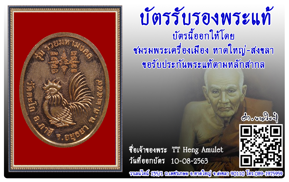 เหรียญหลวงพ่อรวย วัดตะโก พ.ศ.2559 2563 10 ส.ค. 2020 647 share tweet share ชื่อพระ : เหรียญหลวงพ่อรวยประเภท : รุ่นรวยมหามงคล เนื้อทองแดงวัด-ปี : วัดตะโก พ.ศ.2559รหัส : No.31458วันที่ออกบัตร : 10-08-2563ชื่อเจ้าของพระ : TT Heng Amulet