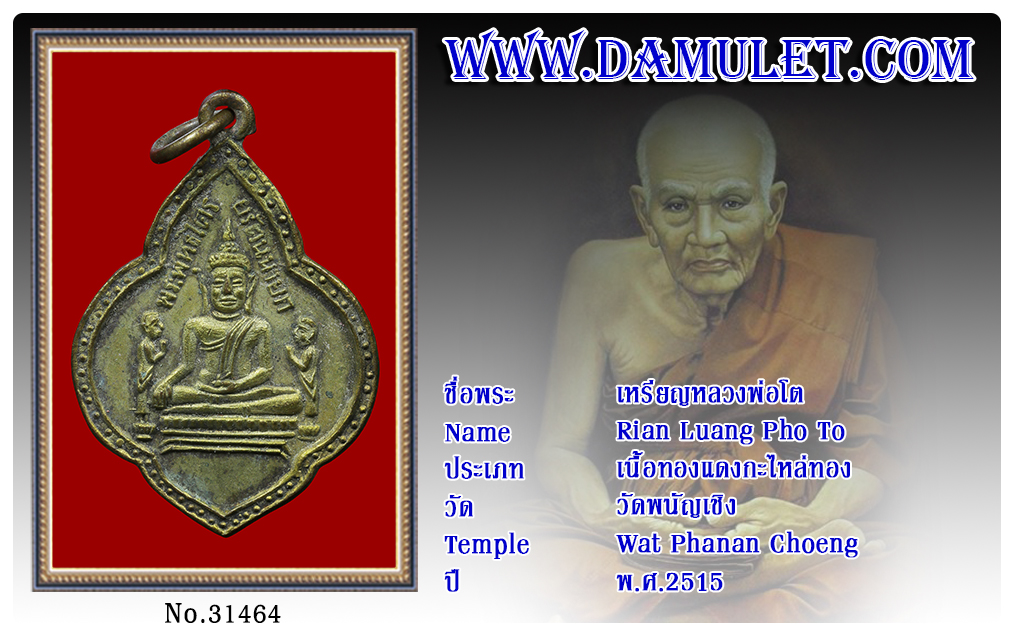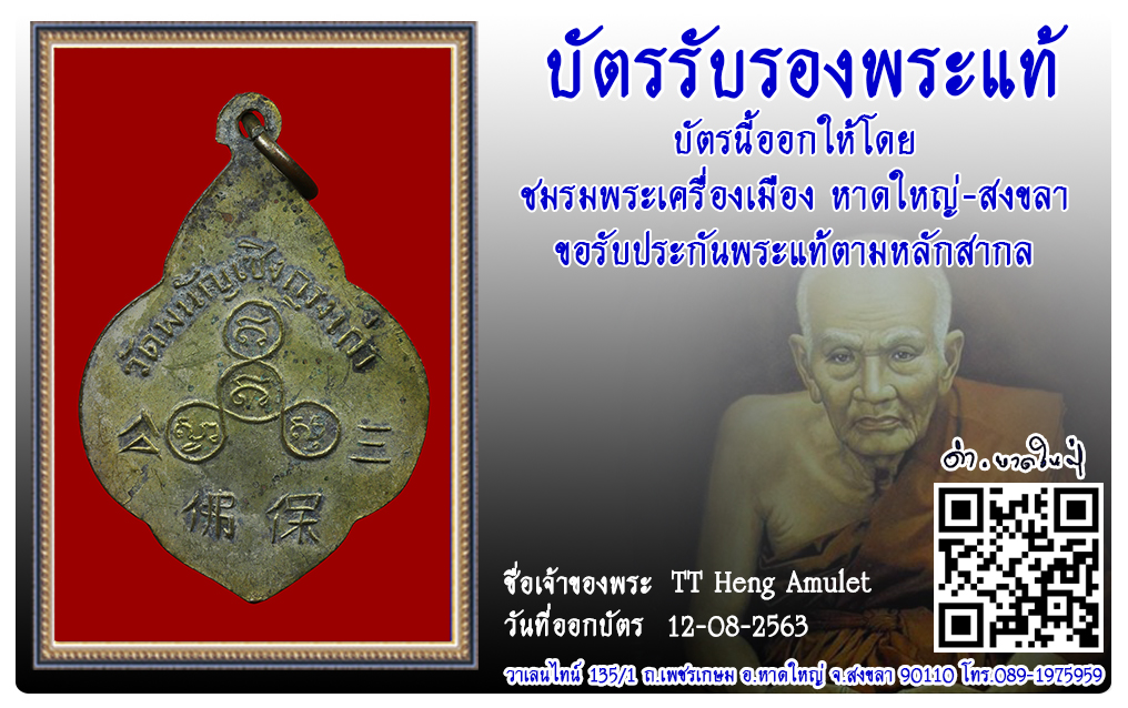 เหรียญหลวงพ่อโต วัดพนัญเชิง พ.ศ.2515 2563 12 ส.ค. 2020 585 share tweet share ชื่อพระ : เหรียญหลวงพ่อโตประเภท : เนื้อทองแดงกะไหล่ทองวัด-ปี : วัดพนัญเชิง พ.ศ.2515รหัส : No.31464วันที่ออกบัตร : 12-08-2563ชื่อเจ้าของพระ : TT Heng Amulet