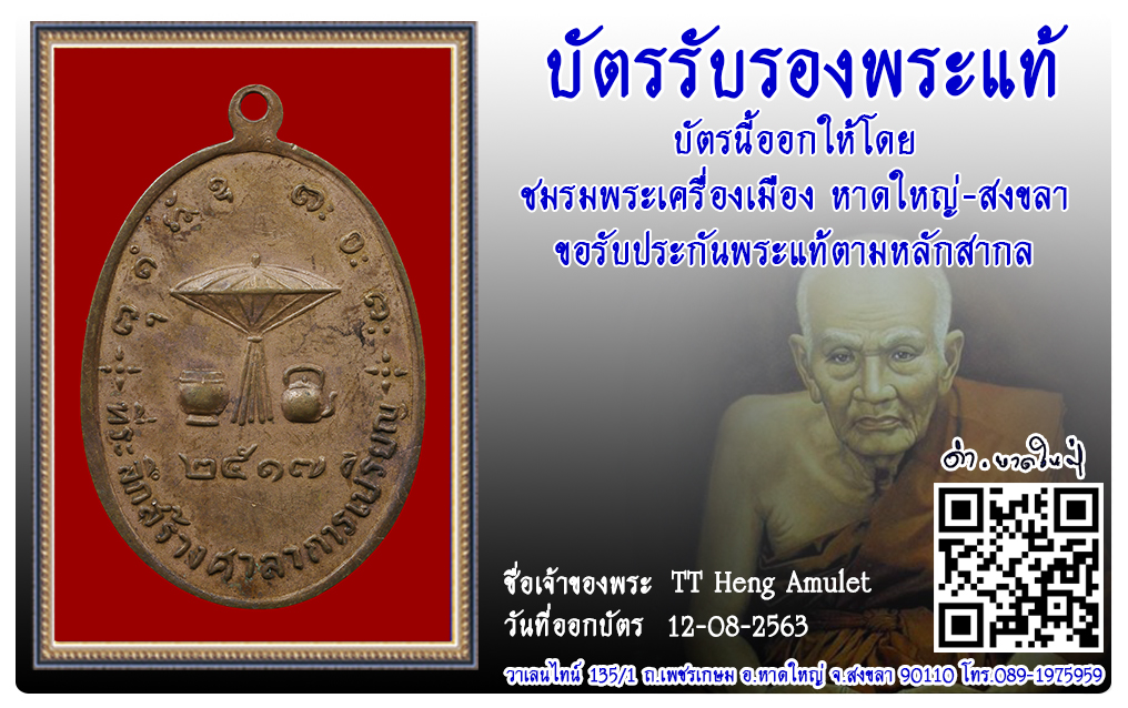 เหรียญหลวงพ่อผาง วัดอุดมคงคาคีรีเขตต์ พ.ศ.2517 2563 12 ส.ค. 2020 619 share tweet share ชื่อพระ : เหรียญหลวงพ่อผางประเภท : ที่ระลึกสร้างศาลาการเปรียญ เนื้อทองแดงวัด-ปี : วัดอุดมคงคาคีรีเขตต์ พ.ศ.2517รหัส : No.31467วันที่ออกบัตร : 12-08-2563ชื่อเจ้าของพระ : TT Heng Amulet