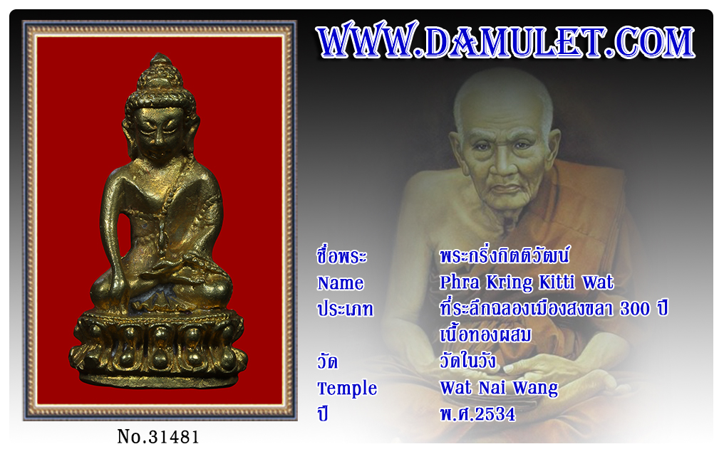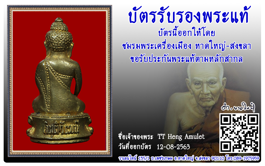 พระกริ่งกิตติวัฒน์ วัดในวัง พ.ศ.2534 2563 12 ส.ค. 2020 1032 share tweet share ชื่อพระ : พระกริ่งกิตติวัฒน์ประเภท : ที่ระลึกฉลองเมืองสงขลา 300 ปี เนื้อทองผสมวัด-ปี : วัดในวัง พ.ศ.2534รหัส : No.31481วันที่ออกบัตร : 12-08-2563ชื่อเจ้าของพระ : TT Heng Amulet