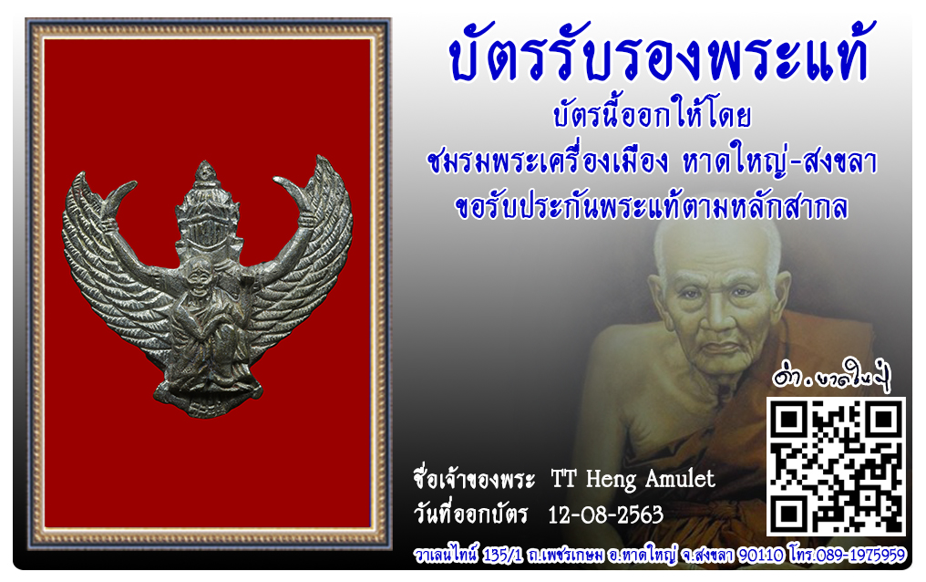 พญาครุฑ หลวงปู่สรวง วัดไพรพัฒนา พ.ศ.2532 2563 12 ส.ค. 2020 1760 share tweet share ชื่อพระ : พญาครุฑชื่อหลวงพ่อ : หลวงปู่สรวงประเภท : รุ่นแรก เนื้ออัลปาก้าวัด-ปี : วัดไพรพัฒนา พ.ศ.2532รหัส : No.31483วันที่ออกบัตร : 12-08-2563ชื่อเจ้าของพระ : TT Heng Amulet
