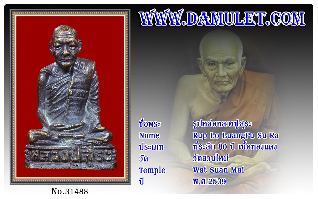 รูปหล่อหลวงปู่สุระ วัดสวนใหม่ พ.ศ.2539 2563 12 ส.ค. 2020 471 share tweet share ชื่อพระ : รูปหล่อหลวงปู่สุระประเภท : ที่ระลึก 80 ปี เนื้อทองแดงวัด-ปี : วัดสวนใหม่ พ.ศ.2539รหัส : No.31488วันที่ออกบัตร : 12-08-2563ชื่อเจ้าของพระ : TT Heng Amulet
