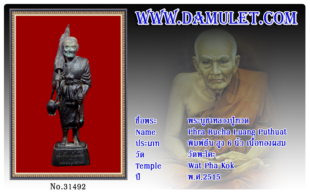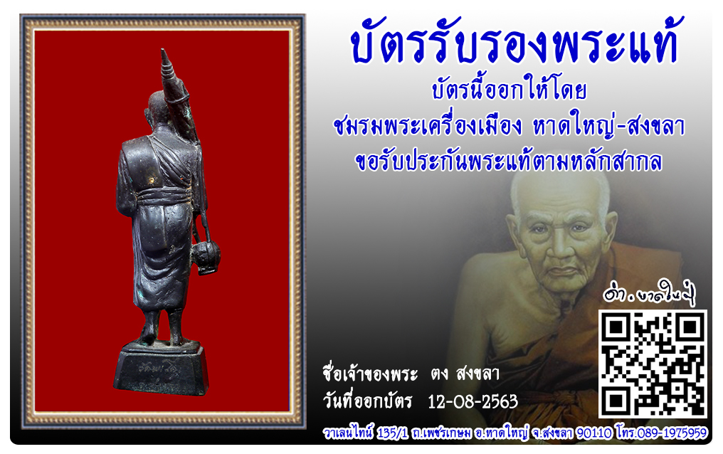 พระบูฃาหลวงปู่ทวด วัดพะโคะ พ.ศ.2515 2563 12 ส.ค. 2020 300 share tweet share ชื่อพระ : พระบูฃาหลวงปู่ทวดประเภท : พิมพ์ยืน สูง 6 นิ้ว เนื้อทองผสมวัด-ปี : วัดพะโคะ พ.ศ.2515รหัส : No.31492วันที่ออกบัตร : 12-08-2563ชื่อเจ้าของพระ : ตง สงขลา