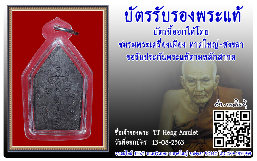 พระขุนแผน ขุนพันธรักษ์ วัดพระบรมธาตุ พ.ศ.2541 2563 13 ส.ค. 2020 347 share tweet share ชื่อพระ : พระขุนแผน ขุนพันธรักษ์ประเภท : รุ่นบ่วงสื่อเฮง เนื้อดำวัด-ปี : วัดพระบรมธาตุ พ.ศ.2541รหัส : No.31511วันที่ออกบัตร : 13-08-2563ชื่อเจ้าของพระ : TT Heng Amulet