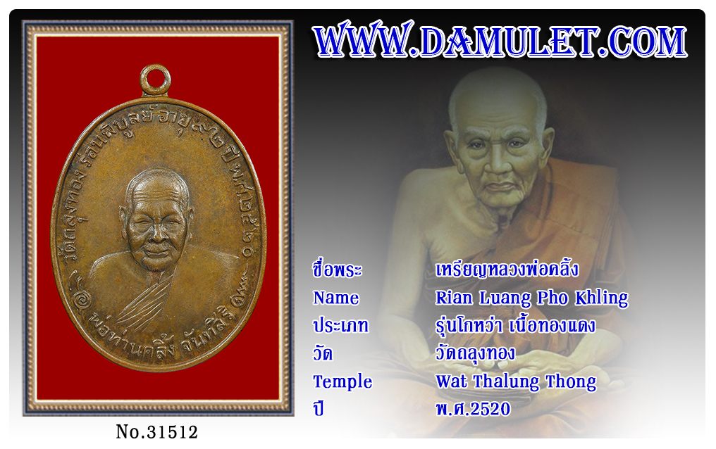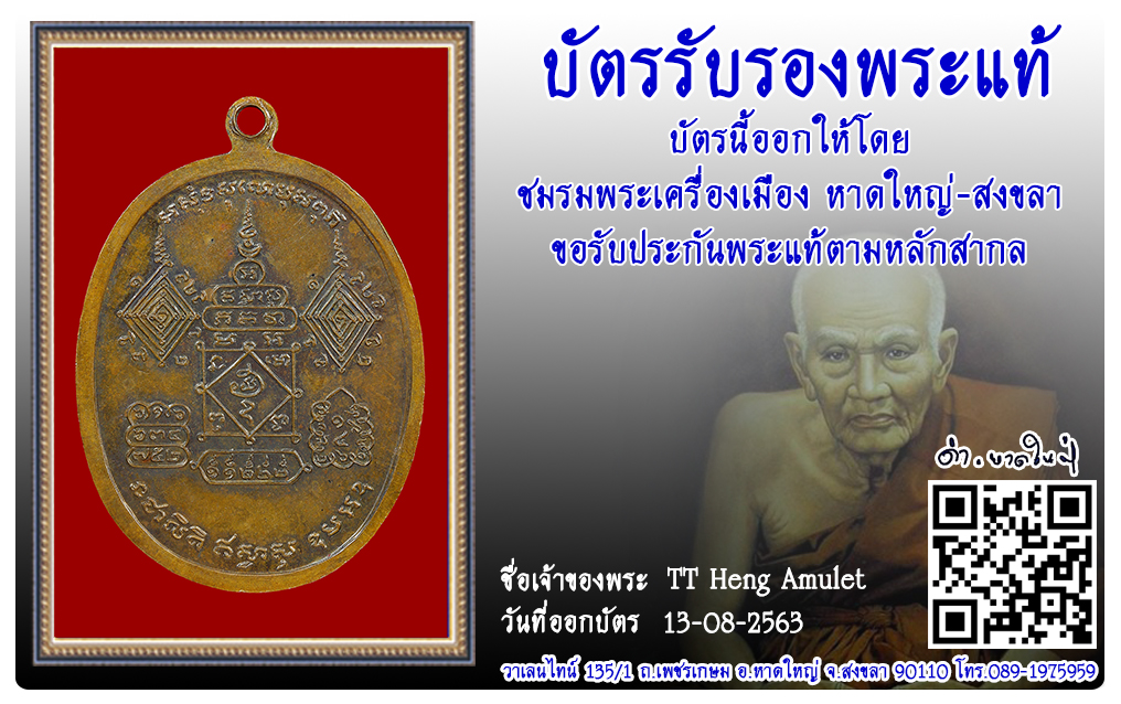 เหรียญหลวงพ่อคลิ้ง วัดถลุงทอง พ.ศ.2520 2563 13 ส.ค. 2020 350 share tweet share ชื่อพระ : เหรียญหลวงพ่อคลิ้งประเภท : รุ่นโกหว่า เนื้อทองแดงวัด-ปี : วัดถลุงทอง พ.ศ.2520รหัส : No.31512วันที่ออกบัตร : 13-08-2563ชื่อเจ้าของพระ : TT Heng Amulet