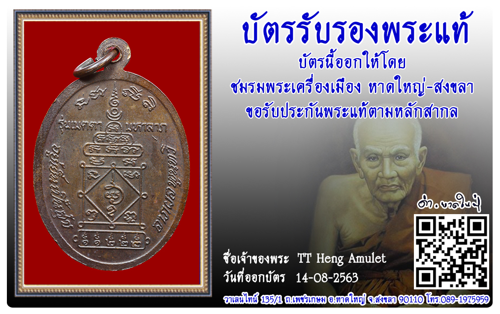 เหรียญพ่อท่านคลิ้ง วัดถลุงทอง พ.ศ.2522 2563 14 ส.ค. 2020 682 share tweet share ชื่อพระ : เหรียญพ่อท่านคลิ้งประเภท : รุ่นเมตตามหาลาภ เนื้อทองแดงวัด-ปี : วัดถลุงทอง พ.ศ.2522รหัส : No.31518วันที่ออกบัตร : 14-08-2563ชื่อเจ้าของพระ : TT Heng Amulet