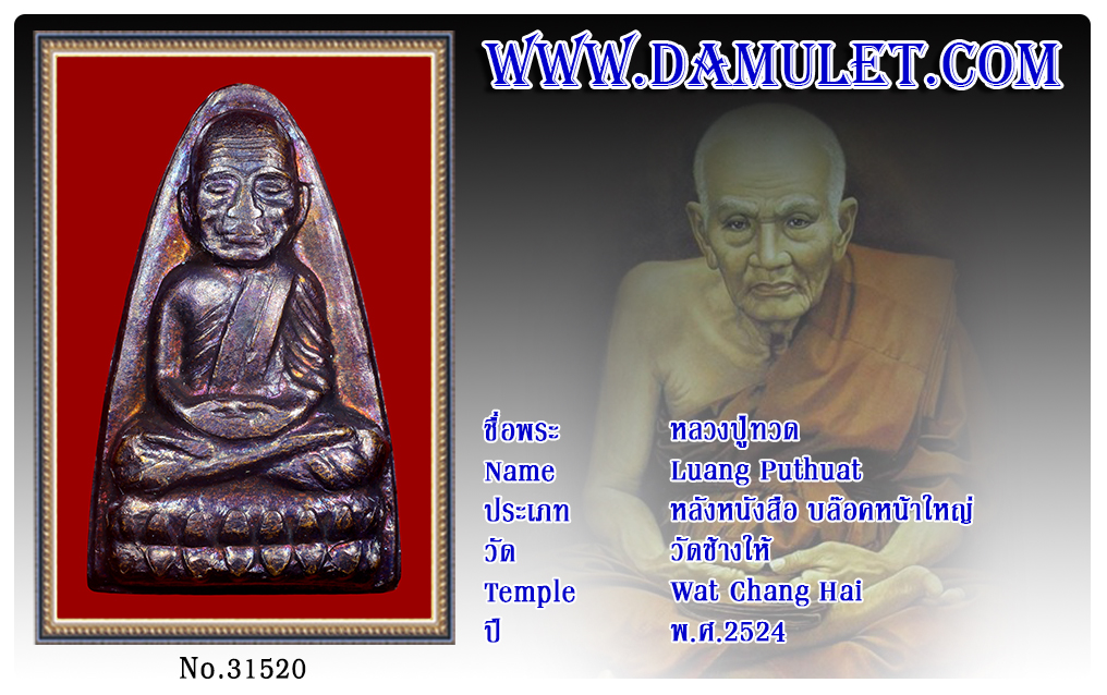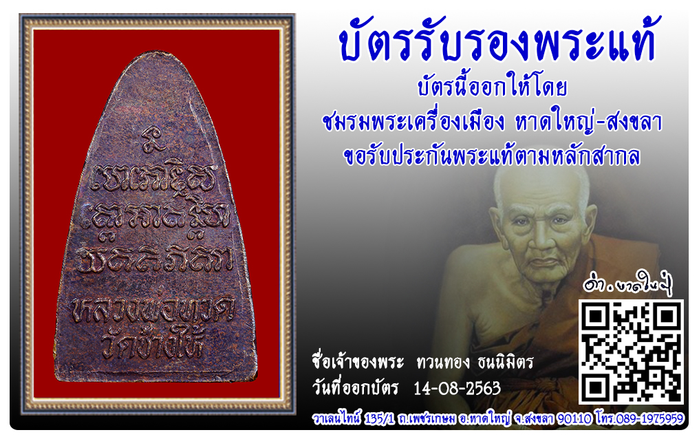 หลวงปู่ทวด วัดช้างให้ พ.ศ.2524 2563 14 ส.ค. 2020 328 share tweet share ชื่อพระ : หลวงปู่ทวดประเภท : หลังหนังสือ บล๊อคหน้าใหญ่วัด-ปี : วัดช้างให้ พ.ศ.2524รหัส : No.31520วันที่ออกบัตร : 14-08-2563ชื่อเจ้าของพระ : ทวนทอง ธนนิมิตร