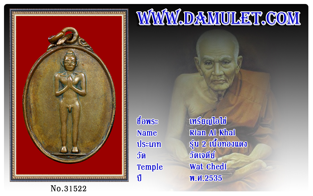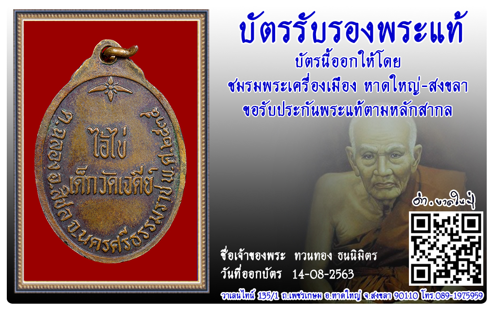 เหรียญไอไข่ วัดเจดีย์ พ.ศ.2535 2563 14 ส.ค. 2020 599 share tweet share ชื่อพระ : เหรียญไอไข่ประเภท : รุ่น 2 เนื้อทองแดงวัด-ปี : วัดเจดีย์ พ.ศ.2535รหัส : No.31522วันที่ออกบัตร : 14-08-2563ชื่อเจ้าของพระ : ทวนทอง ธนนิมิตร