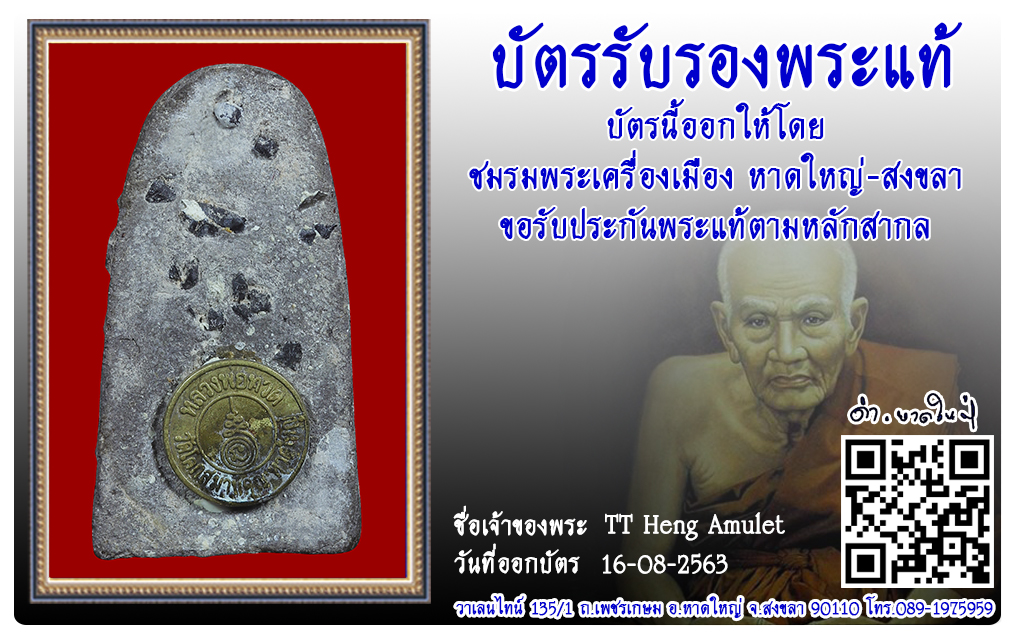 หลวงปู่ทวด วัดโคกสมานคุณ พ.ศ.2539 2563 16 ส.ค. 2020 366 share tweet share ชื่อพระ : หลวงปู่ทวดประเภท : เนื้อว่าน พิมพ์พระรอดวัด-ปี : วัดโคกสมานคุณ พ.ศ.2539รหัส : No.31525วันที่ออกบัตร : 16-08-2563ชื่อเจ้าของพระ : TT Heng Amulet