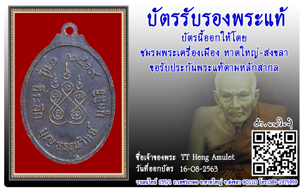 เหรียญหลวงพ่อชม วัดตลุก พ.ศ.2519 2563 16 ส.ค. 2020 535 share tweet share ชื่อพระ : เหรียญหลวงพ่อชมประเภท : ที่ระลึกอายุ 75 ปี เนื้อทองแดงวัด-ปี : วัดตลุก พ.ศ.2519รหัส : No.31529วันที่ออกบัตร : 16-08-2563ชื่อเจ้าของพระ : TT Heng Amulet