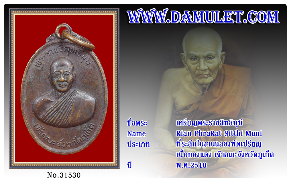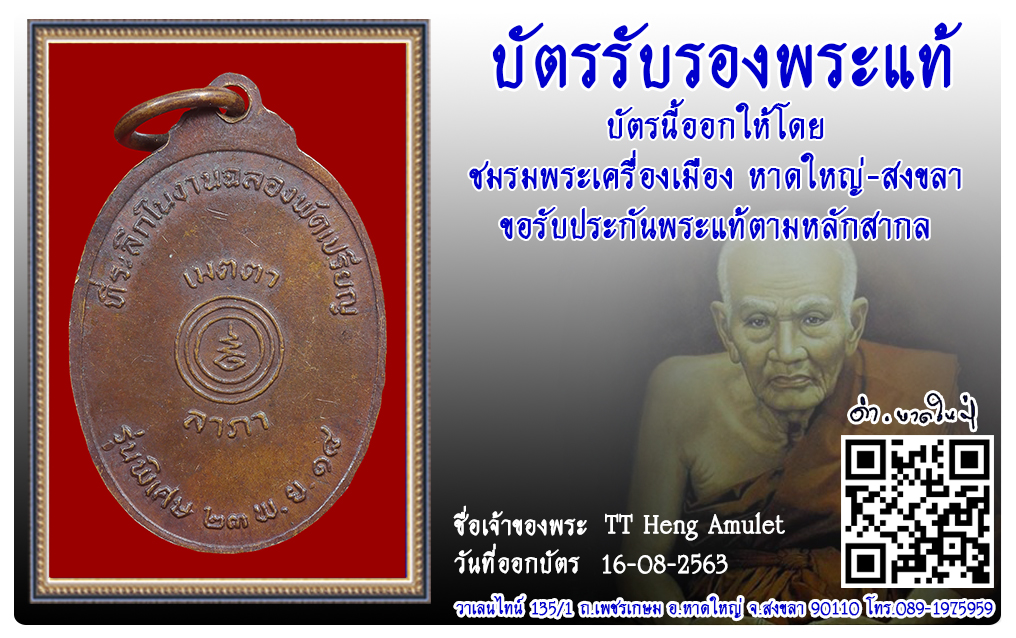 เหรียญพระราชสิทธิมุนี พ.ศ.2518 2563 16 ส.ค. 2020 324 share tweet share ชื่อพระ : เหรียญพระราชสิทธิมุนีประเภท : ที่ระลึกในงานฉลองพัดเปรียญ เนื้อทองแดง เจ้าคณะจังหวัดภูเก็ตวัด-ปี : พ.ศ.2518รหัส : No.31530วันที่ออกบัตร : 16-08-2563ชื่อเจ้าของพระ : TT Heng Amulet