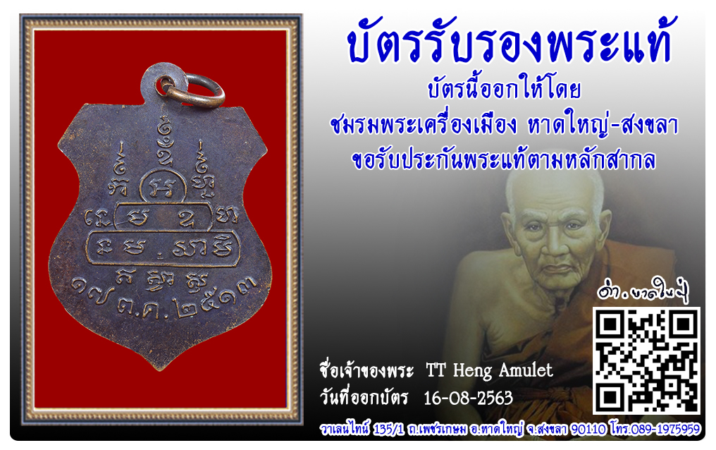 เหรียญพระครูเอื้อน วัดวัดราษฎร์สโมสรชลบุรี พ.ศ.2513 2563 16 ส.ค. 2020 830 share tweet share ชื่อพระ : เหรียญพระครูเอื้อนประเภท : เนื้อทองแดงวัด-ปี : วัดราษฎร์สโมสรชลบุรี พ.ศ.2513รหัส : No.31532วันที่ออกบัตร : 16-08-2563ชื่อเจ้าของพระ : TT Heng Amulet