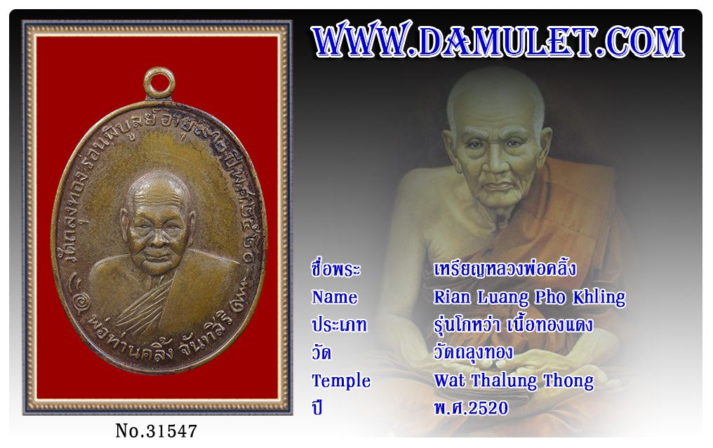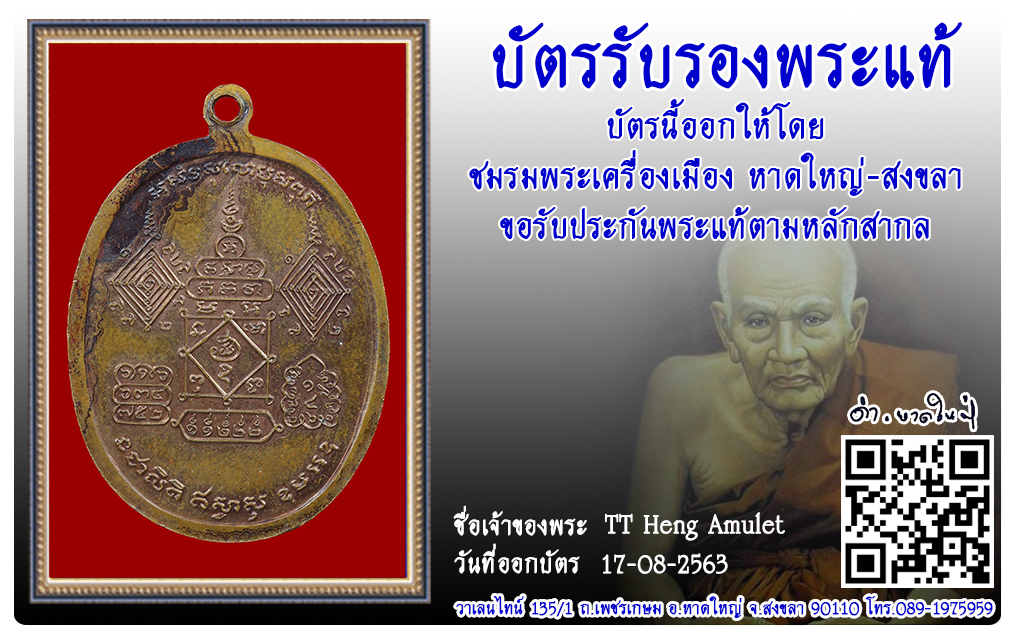 เหรียญหลวงพ่อคลิ้ง วัดถลุงทอง พ.ศ.2520 2563 17 ส.ค. 2020 313 share tweet share ชื่อพระ : เหรียญหลวงพ่อคลิ้งประเภท : รุ่นโกหว่า เนื้อทองแดงวัด-ปี : วัดถลุงทอง พ.ศ.2520รหัส : No.31547วันที่ออกบัตร : 17-08-2563ชื่อเจ้าของพระ : TT Heng Amulet