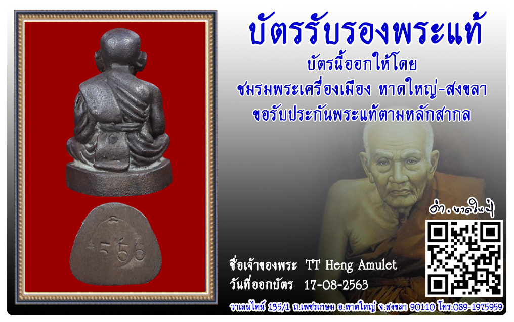รูปหล่อหลวงปู่ทวด อาจารย์นอง วัดทรายขาว พ.ศ.2537 2563 17 ส.ค. 2020 893 share tweet share ชื่อพระ : รูปหล่อหลวงปู่ทวดชื่อหลวงพ่อ : อาจารย์นองประเภท : พิมพ์ก้นตัน เนื้อนวะ No.556วัด-ปี : วัดทรายขาว พ.ศ.2537รหัส : No.31551วันที่ออกบัตร : 17-08-2563ชื่อเจ้าของพระ : TT Heng Amulet