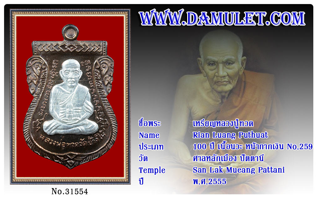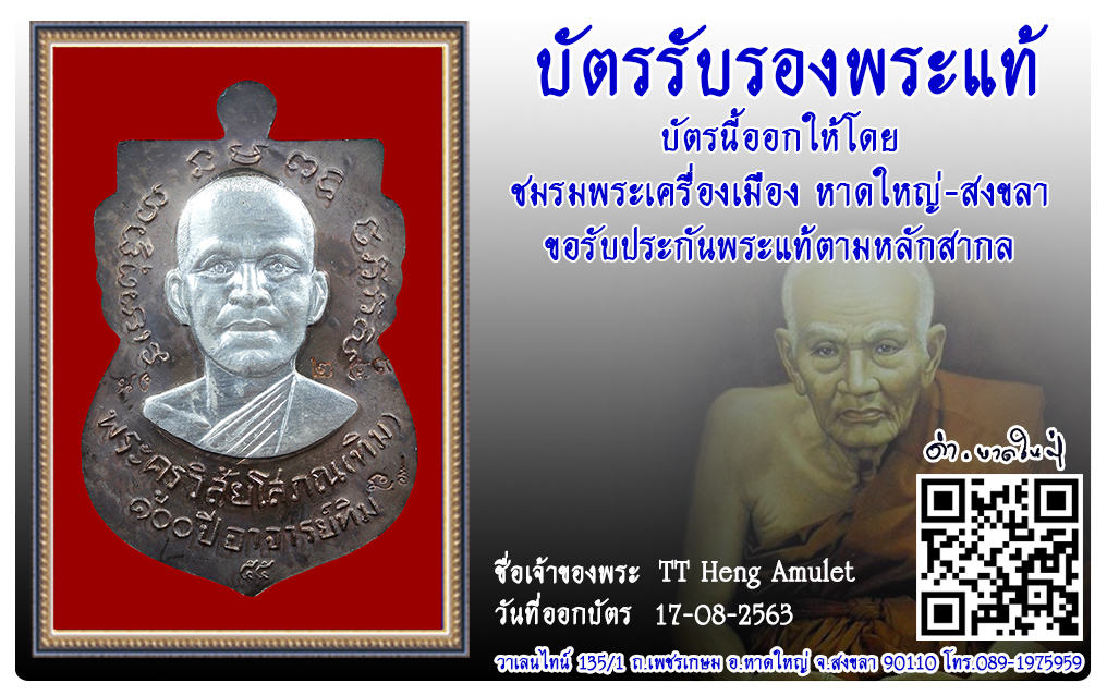 เหรียญหลวงปู่ทวด ศาลหลักเมือง ปัตตานี พ.ศ.2555 2563 17 ส.ค. 2020 384 share tweet share ชื่อพระ : เหรียญหลวงปู่ทวดประเภท : 100 ปี เนื้อนวะ หน้ากากเงิน No.259วัด-ปี : ศาลหลักเมือง ปัตตานี พ.ศ.2555รหัส : No.31554วันที่ออกบัตร : 17-08-2563ชื่อเจ้าของพระ : TT Heng Amulet