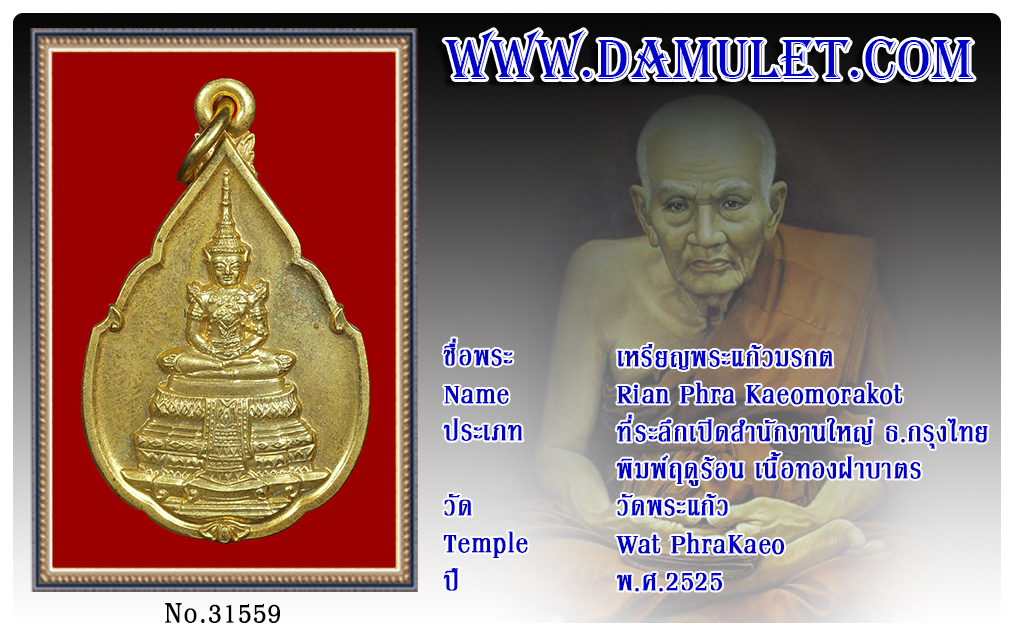 เหรียญพระแก้วมรกต วัดพระแก้ว พ.ศ.2525 2563 18 ส.ค. 2020 440 share tweet share ชื่อพระ : เหรียญพระแก้วมรกตประเภท : ที่ระลึกเปิดสำนักงานใหญ่ ธ.กรุงไทย พิมพ์ฤดูร้อน เนื้อทองฝาบาตรวัด-ปี : วัดพระแก้ว พ.ศ.2525รหัส : No.31559วันที่ออกบัตร : 18-08-2563ชื่อเจ้าของพระ : TT Heng Amulet