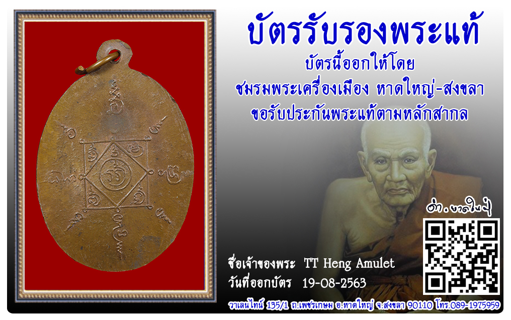 เหรียญพ่อท่านคล้าย วัดสวนขัน พ.ศ.2502 2563 19 ส.ค. 2020 523 share tweet share ชื่อพระ : เหรียญพ่อท่านคล้ายประเภท : รุ่นแจกแม่ครัว บล็อคมีผด เนื้อทองแดงวัด-ปี : วัดสวนขัน พ.ศ.2502รหัส : No.31564วันที่ออกบัตร : 19-08-2563ชื่อเจ้าของพระ : TT Heng Amulet