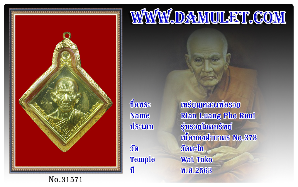 เหรียญหลวงพ่อรวย วัดตะโก พ.ศ.2563 2563 21 ส.ค. 2020 947 share tweet share ชื่อพระ : เหรียญหลวงพ่อรวยประเภท : รุ่นรวยโภคทรัพย์ เนื้อทองฝาบาตร No.373วัด-ปี : วัดตะโก พ.ศ.2563รหัส : No.31571วันที่ออกบัตร : 21-08-2563ชื่อเจ้าของพระ : TT Heng Amulet