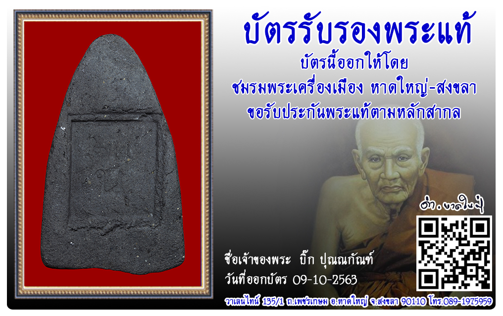 หลวงปู่ทวด อาจารย์นอง วัดทรายขาว พ.ศ.2534 2563 09 ต.ค. 2020 356 share tweet share ชื่อพระ : หลวงปู่ทวดชื่อหลวงพ่อ : อาจารย์นองประเภท : รุ่น M16 เนื้อว่าน พิมพ์กลางวัด-ปี : วัดทรายขาว พ.ศ.2534รหัส : No.32184วันที่ออกบัตร : 09-10-2563ชื่อเจ้าของพระ : บิ๊ก ปุณณกัณฑ์