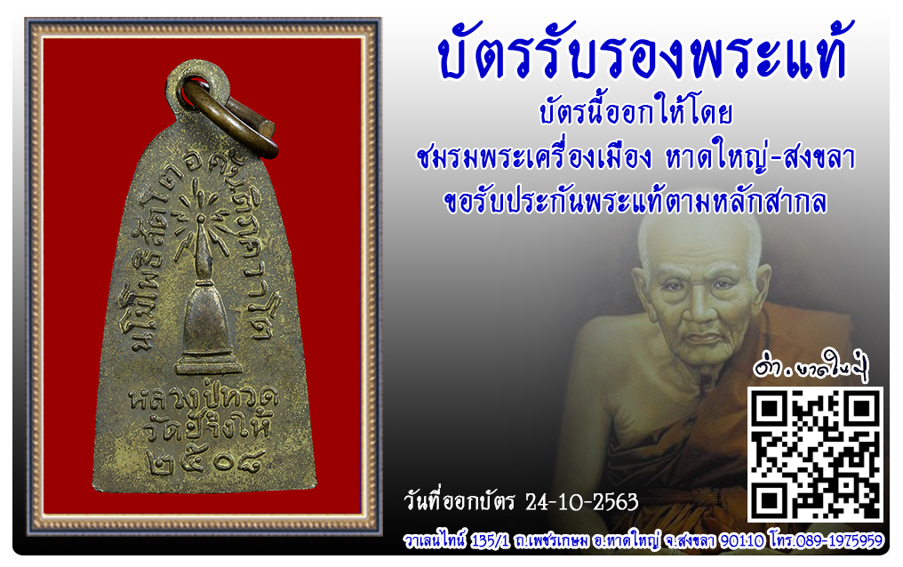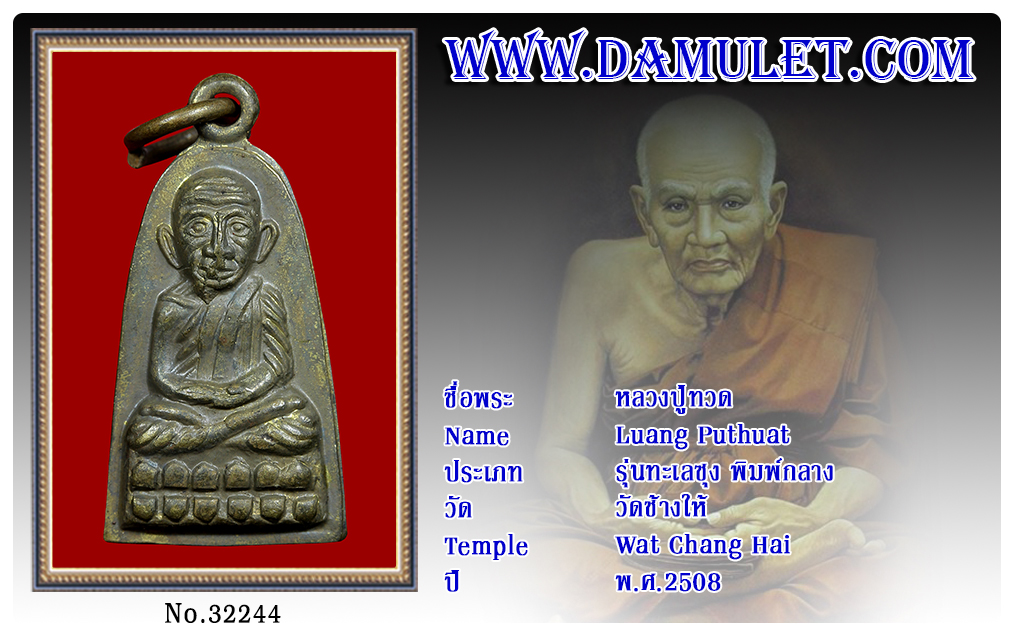 หลวงปู่ทวด วัดช้างให้ พ.ศ.2508 2563 24 ต.ค. 2020 329 share tweet share ชื่อพระ : หลวงปู่ทวดประเภท : รุ่นทะเลซุง พิมพ์กลางวัด-ปี : วัดช้างให้ พ.ศ.2508รหัส : No.32244วันที่ออกบัตร : 24-10-2563