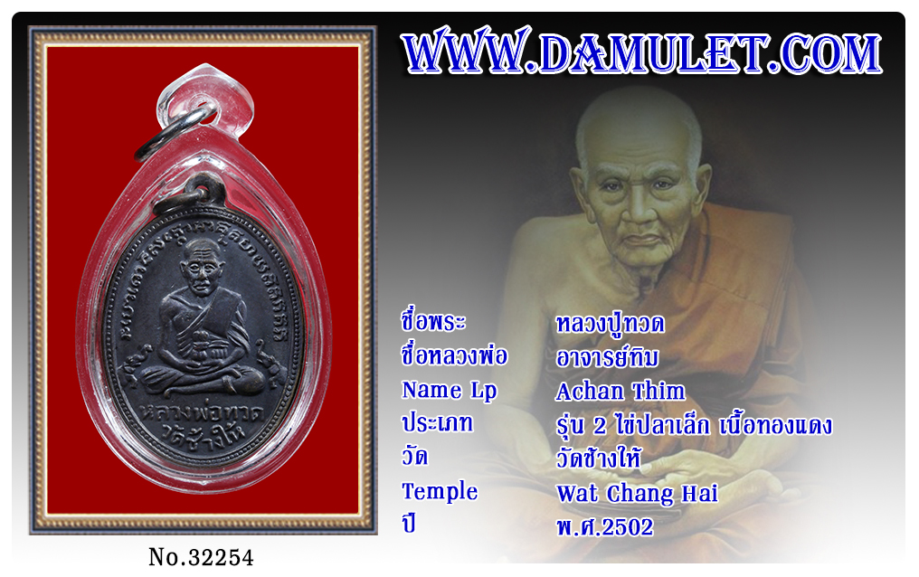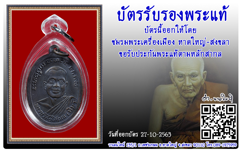 หลวงปู่ทวด อาจารย์ทิม วัดช้างให้ พ.ศ.2502 2563 27 ต.ค. 2020 315 share tweet share ชื่อพระ : หลวงปู่ทวดชื่อหลวงพ่อ : อาจารย์ทิมประเภท : รุ่น 2 ไข่ปลาเล็ก เนื้อทองแดงวัด-ปี : วัดช้างให้ พ.ศ.2502รหัส : No.32254วันที่ออกบัตร : 27-10-2563