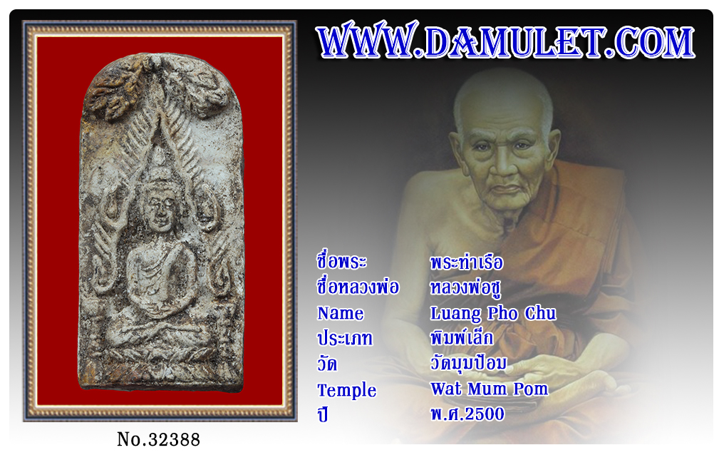 พระท่าเรือ หลวงพ่อชู วัดมุมป้อม พ.ศ.2500 2563 25 พ.ย. 2020 313 share tweet share ชื่อพระ : พระท่าเรือชื่อหลวงพ่อ : หลวงพ่อชูประเภท : พิมพ์เล็กวัด-ปี : วัดมุมป้อม พ.ศ.2500รหัส : No.32388วันที่ออกบัตร : 25-11-2563
