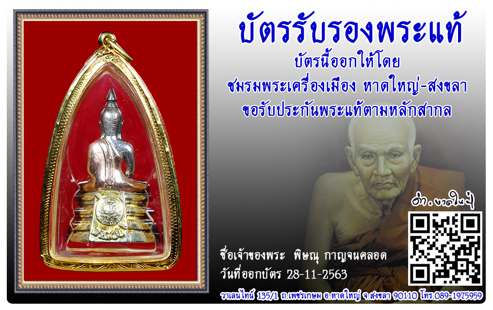 พระพุทธโสธร วัดโสธรวราราม พ.ศ.2538 2563 28 พ.ย. 2020 438 share tweet share ชื่อพระ : พระพุทธโสธรประเภท : รุ่น 80 ปี กรมตำรวจ เนื้อเงิน ชุบสามกษัตริย์ No.57920วัด-ปี : วัดโสธรวราราม พ.ศ.2538รหัส : No.32389วันที่ออกบัตร : 28-11-2563ชื่อเจ้าของพระ : พิษณุ กาญจนคลอด