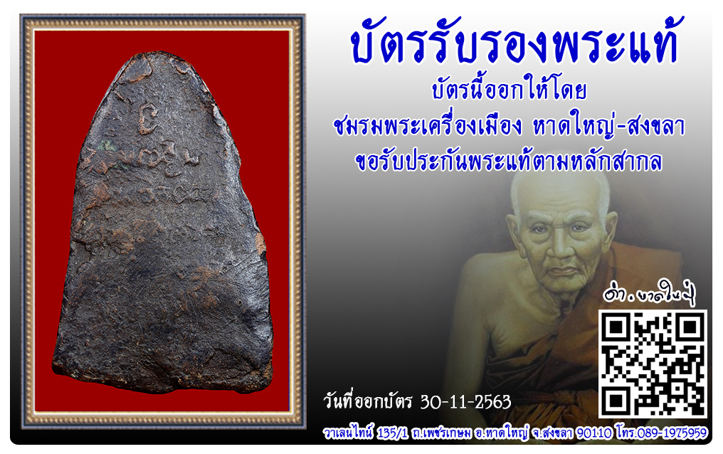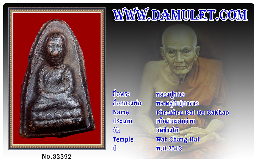 หลวงปู่ทวด พระครูใบฏีกาขาว วัดช้างให้ พ.ศ.2513 2563 30 พ.ย. 2020 309 share tweet share ชื่อพระ :หลวงปู่ทวดชื่อหลวงพ่อ : พระครูใบฏีกาขาวประเภท : เนื้อดินผสมว่านวัด-ปี : วัดช้างให้ พ.ศ.2513รหัส : No.32392วันที่ออกบัตร : 30-11-2563