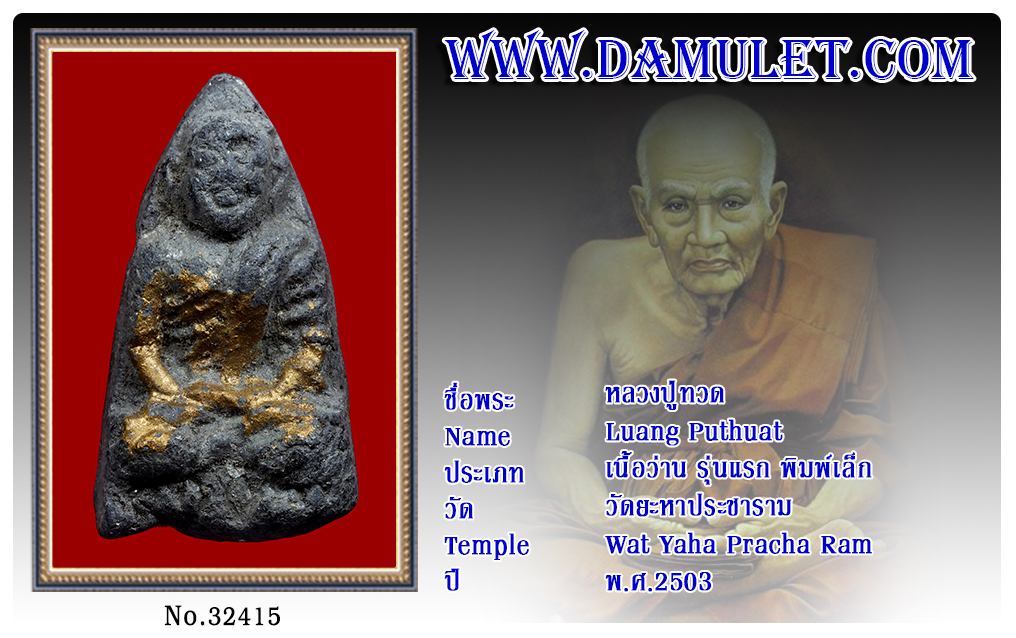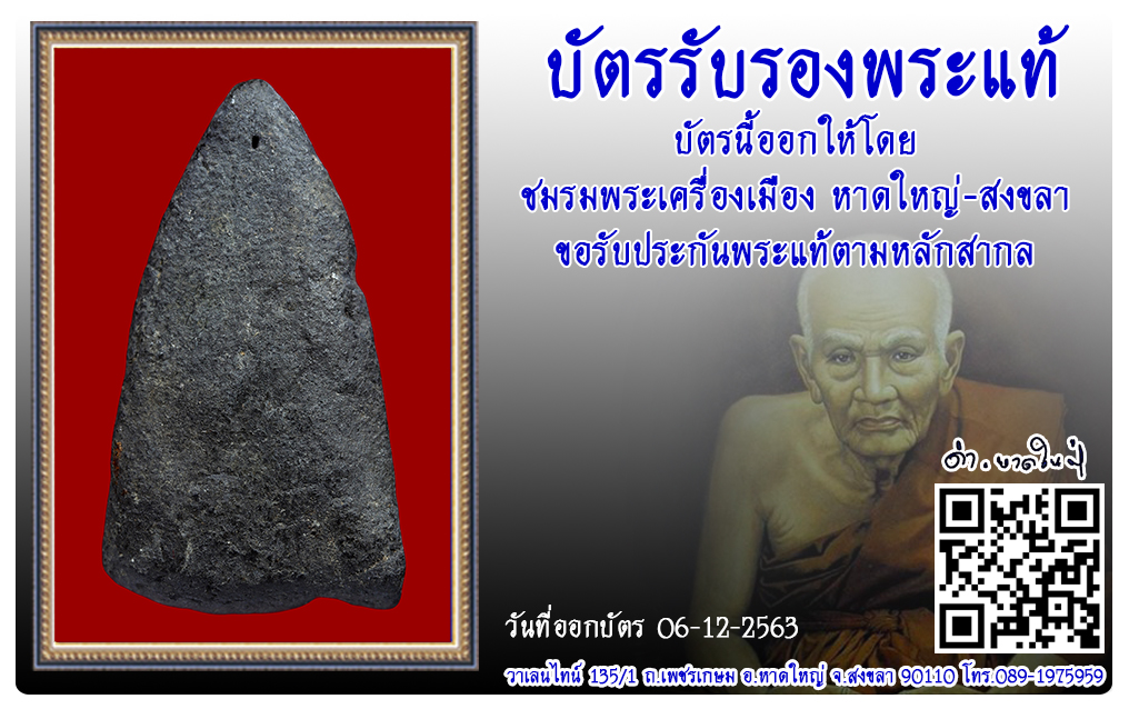 หลวงปู่ทวด วัดยะหาประชาราม พ.ศ.2503 2563 06 ธ.ค. 2020 1189 share tweet share ชื่อพระ : หลวงปู่ทวดประเภท: เนื้อว่าน รุ่นแรก พิมพ์เล็กวัด-ปี : วัดยะหาประชาราม พ.ศ.2503รหัส : No.32415วันที่ออกบัตร : 06-12-2563