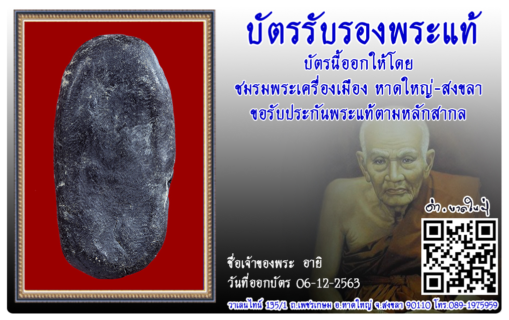 พระพิมพ์ปรกโพธิ์เม็ด วัดหลักห้า พ.ศ.2503 2563 06 ธ.ค. 2020 328 share tweet share ชื่อพระ : พระพิมพ์ปรกโพธิ์เม็ดประเภท : เนื้อดินผสมว่านวัด-ปี : วัดหลักห้า พ.ศ.2503รหัส : No.32421วันที่ออกบัตร : 06-12-2563ชื่อเจ้าของพระ : อายิ