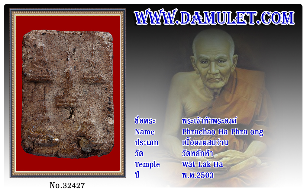 พระเจ้าห้าพระองค์ วัดหลักห้า พ.ศ.2503 2563 06 ธ.ค. 2020 316 share tweet share ชื่อพระ : พระเจ้าห้าพระองค์ประเภท : เนื้อผงผสมว่านวัด-ปี : วัดหลักห้า พ.ศ.2503รหัส : No.32427วันที่ออกบัตร : 06-12-2563ชื่อเจ้าของพระ : อายิ