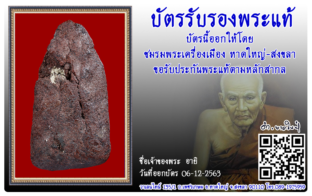 พระขุนแผนสะดุ้งกลับ วัดหลักห้า พ.ศ.2503 2563 06 ธ.ค. 2020 286 share tweet share ชื่อพระ : พระขุนแผนสะดุ้งกลับประเภท : รุ่นแรก พิมพ์ใหญ่วัด-ปี : วัดหลักห้า พ.ศ.2503รหัส : No.32440วันที่ออกบัตร : 06-12-2563ชื่อเจ้าของพระ : อายิ