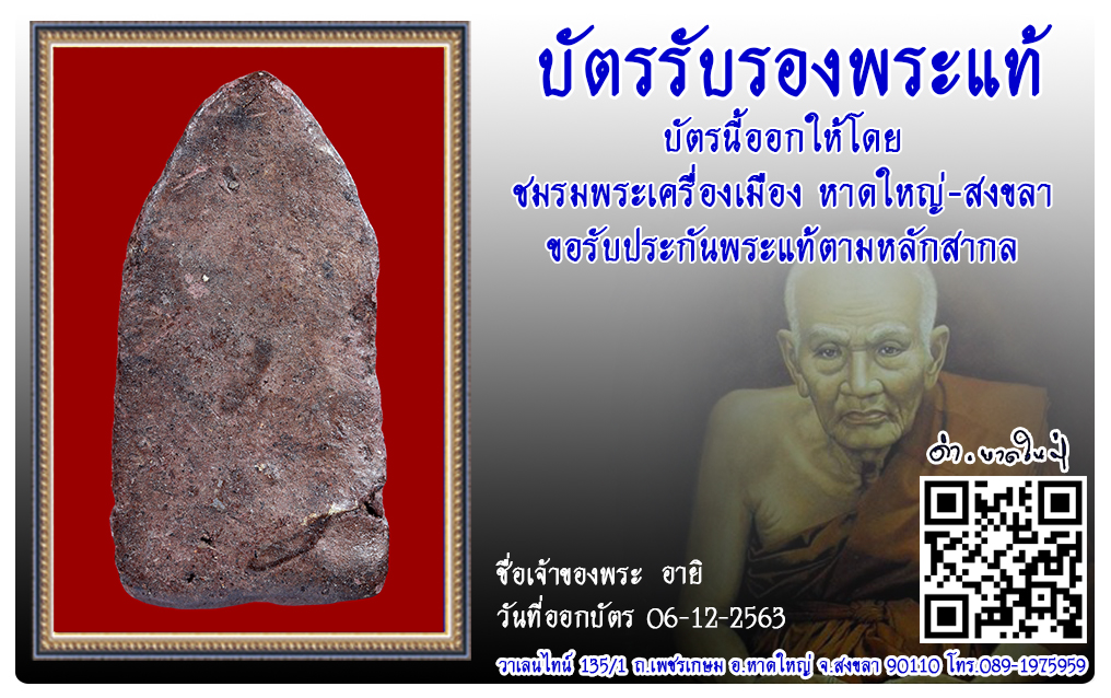 พระขุนแผนสะดุ้งกลับ วัดหลักห้า พ.ศ.2503 2563 06 ธ.ค. 2020 299 share tweet share ชื่อพระ : พระขุนแผนสะดุ้งกลับประเภท : รุ่นแรก พิมพ์ใหญ่วัด-ปี : วัดหลักห้า พ.ศ.2503รหัส : No.32443วันที่ออกบัตร : 06-12-2563ชื่อเจ้าของพระ : อายิ