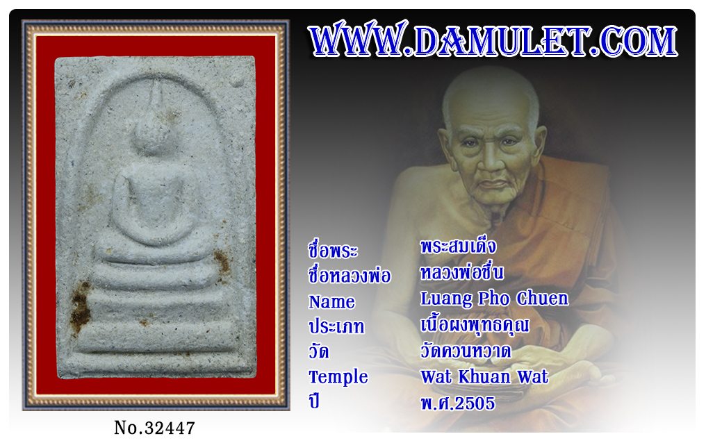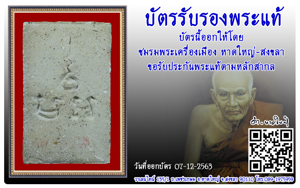 พระสมเด็จ หลวงพ่อชื่น วัดควนหวาน พ.ศ.2505 2563 07 ธ.ค. 2020 474 share tweet share ชื่อพระ : พระสมเด็จชื่อหลวงพ่อ : หลวงพ่อชื่นประเภท : เนื้อผงพุทธคุณวัด-ปี : วัดควนหวาน พ.ศ.2505รหัส : No.32447วันที่ออกบัตร : 07-12-2563