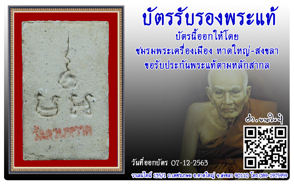 พระสมเด็จ หลวงพ่อชื่น วัดควนหวาน พ.ศ.2505 2563 07 ธ.ค. 2020 317 share tweet share ชื่อพระ : พระสมเด็จชื่อหลวงพ่อ : หลวงพ่อชื่นประเภท : เนื้อผงพุทธคุณวัด-ปี : วัดควนหวาน พ.ศ.2505รหัส : No.32448วันที่ออกบัตร : 07-12-2563