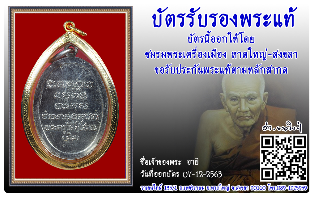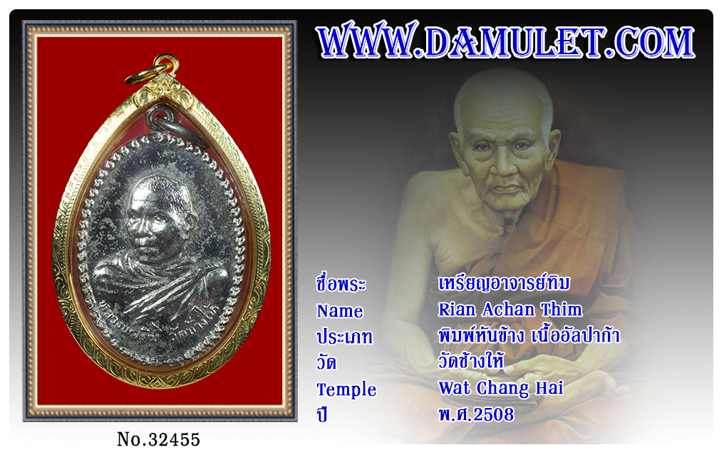 เหรียญอาจารย์ทิม วัดช้างให้ พ.ศ.2508 2563 07 ธ.ค. 2020 315 share tweet share ชื่อพระ : เหรียญอาจารย์ทิมประเภท : พิมพ์หันข้าง เนื้ออัลปาก้าวัด-ปี : วัดช้างให้ พ.ศ.2508รหัส : No.32455วันที่ออกบัตร : 07-12-2563ชื่อเจ้าของพระ : อายิ