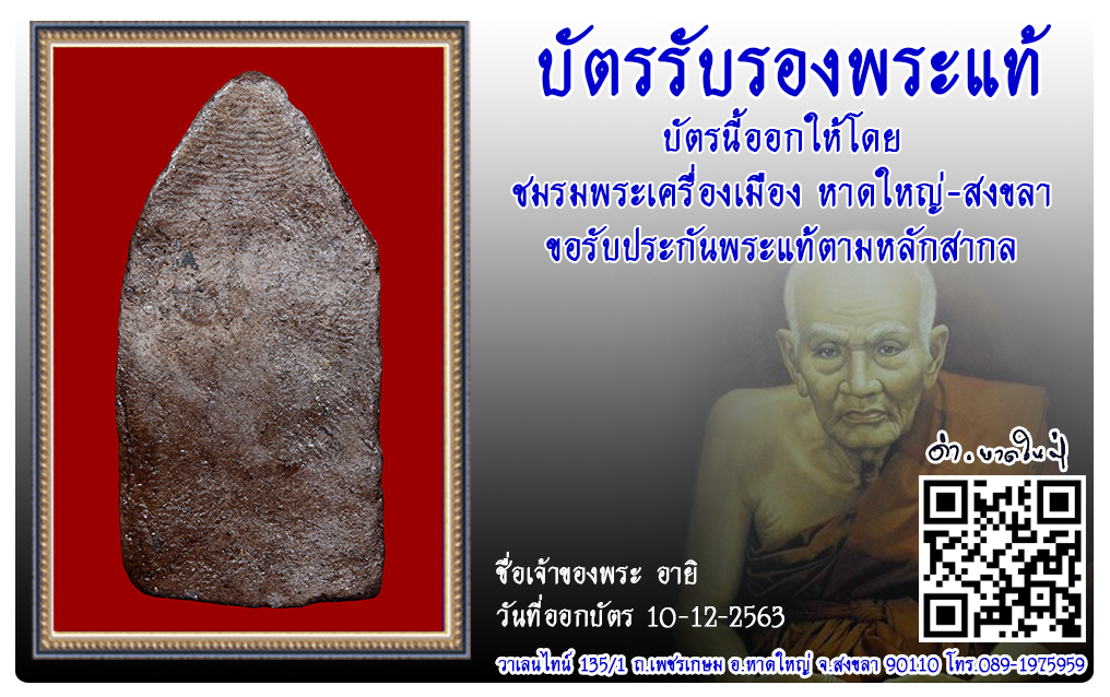 พระขุนแผนสะดุ้งกลับ วัดหลักห้า พ.ศ.2503 2563 10 ธ.ค. 2020 350 share tweet share ชื่อพระ : พระขุนแผนสะดุ้งกลับประเภท : รุ่นแรก พิมพ์ใหญ่วัด-ปี : วัดหลักห้า พ.ศ.2503รหัส : No.32480วันที่ออกบัตร : 10-12-2563ชื่อเจ้าของพระ : อายิ